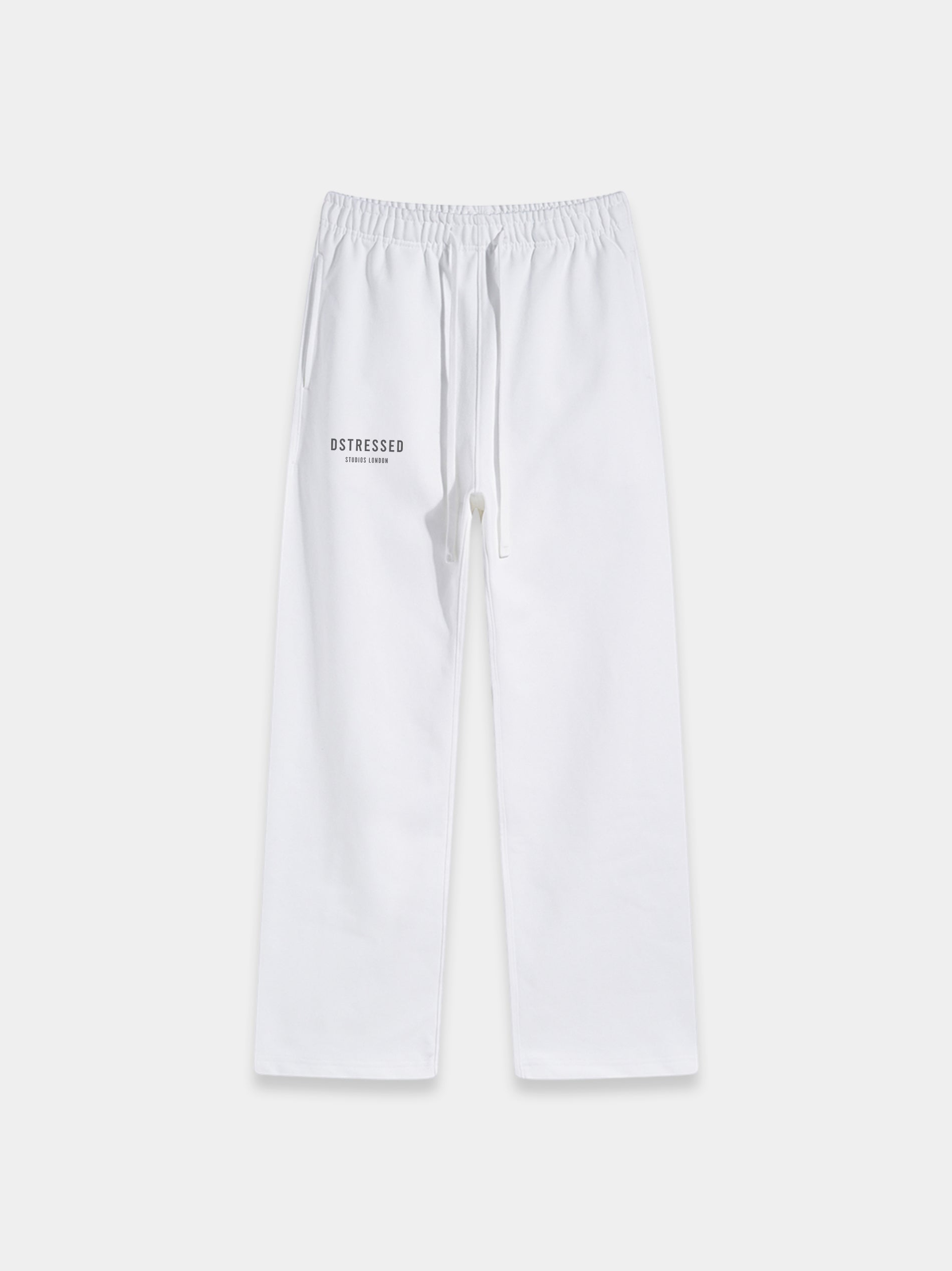 The Dstressed Studios Heavy Fleece Sweatpant is made from heavyweight 460gsm, cotton fleece. The signature graphic is screen-printed on the leg. Additional details include an encased elastic waistband with elongated drawstrings, side seam pockets, and wide straight ankle hems.