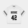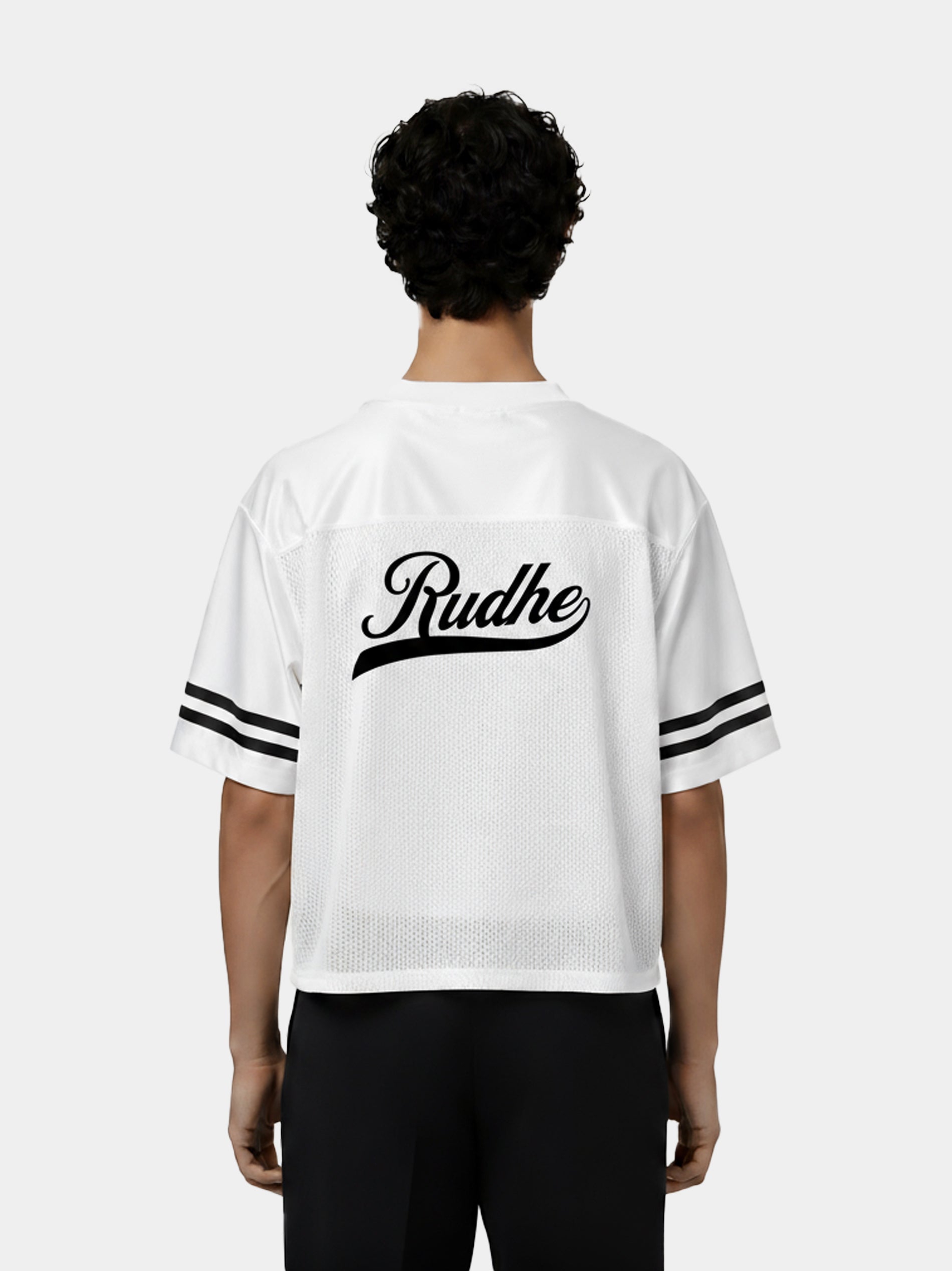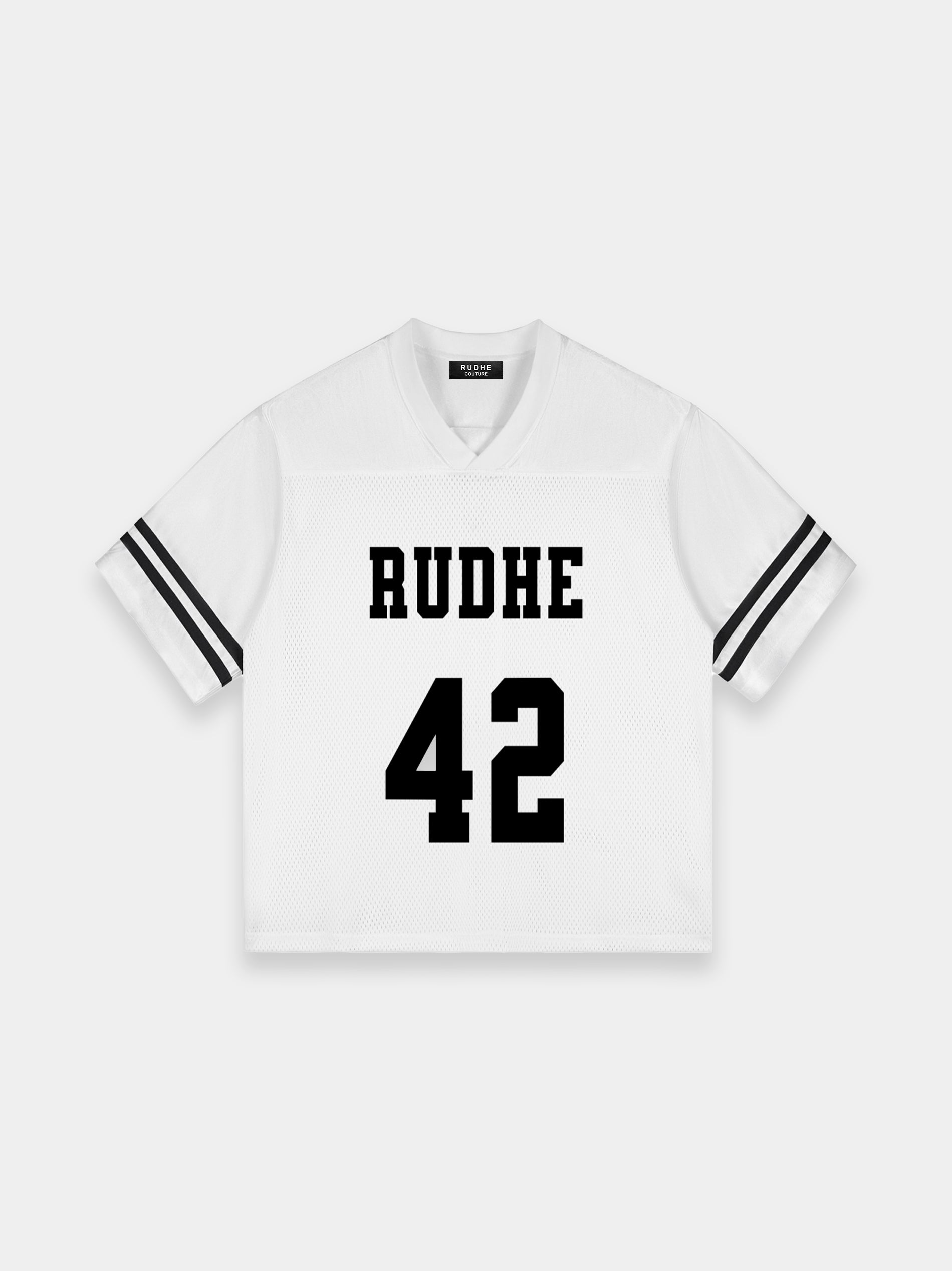 The Rudhe Couture Football Mesh tee engineered with 240g 100% polyester moisture-wicking mesh, features geometric paneling and a relaxed drop-shoulder cut. Print on the center front, and back.